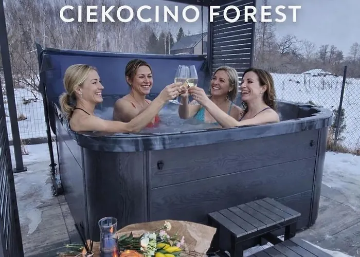 Ciekocino Forest Apartamenty Nad Morzem, som ligger cirka 10 minuter med bil från Nature Reserve Choczewskie Tisza, har en pool med uteplats. Gästerna befinner sig inom 4 km från Stilo fyr och 25 minuters bilresa från Karwia.